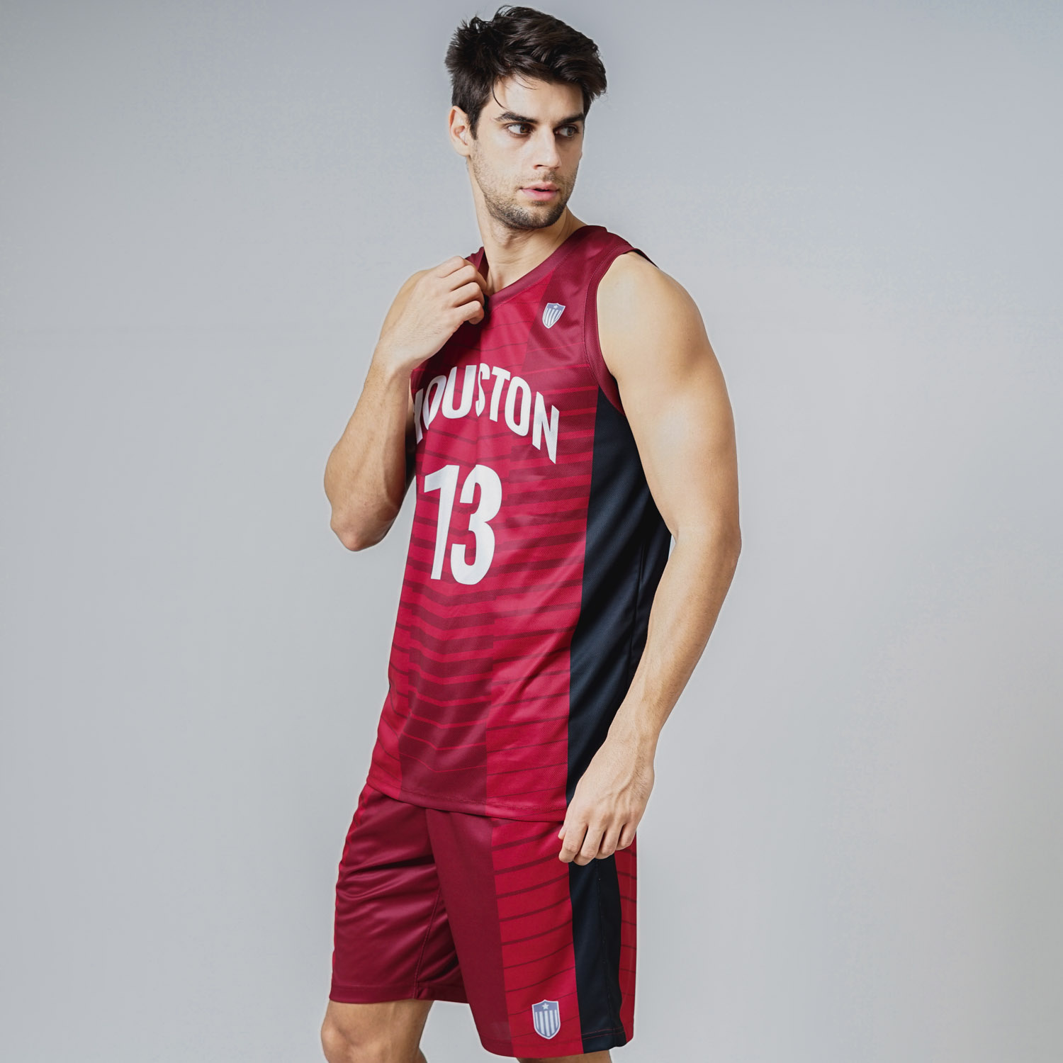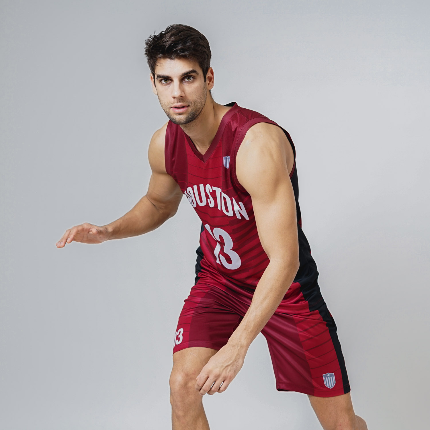 We, as a basketball jersey bulk order supplier produces complete basketball uniform sets, which include jerseys and shorts that customers can customize through full sublimation printing.